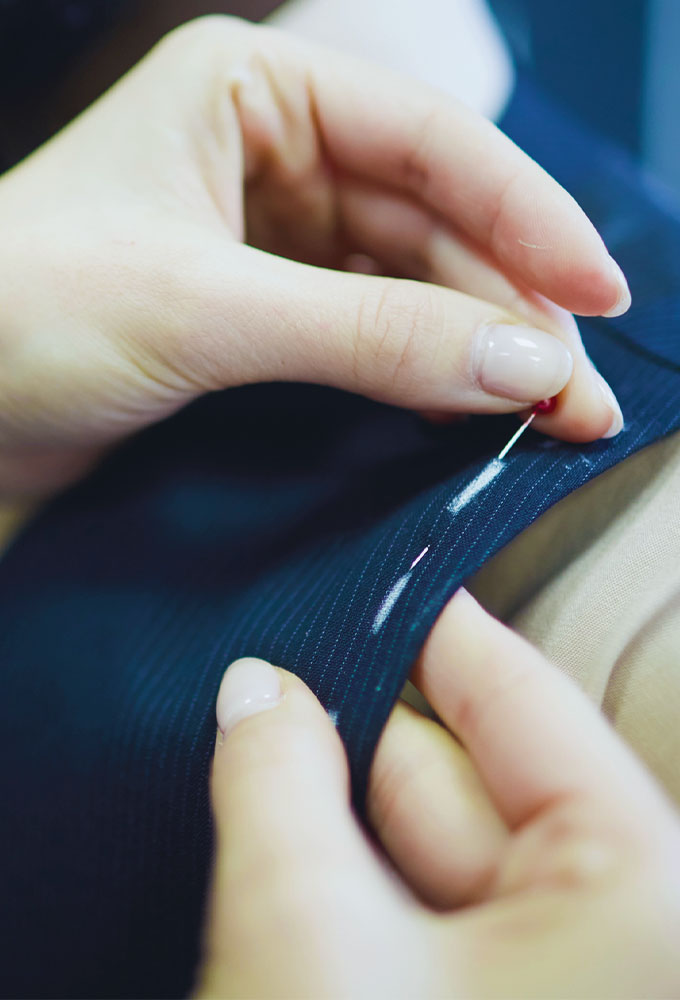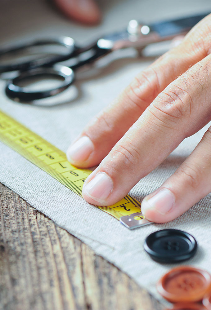 Po uhrazení platby, šijeme a upravujeme. Proces šití na míru trvá